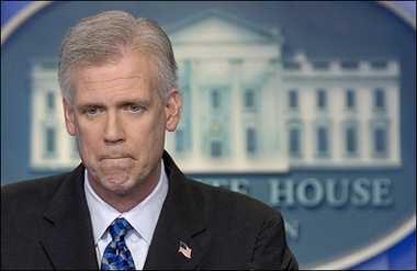 综合报道,美国白宫新闻发言人托尼-斯诺最近突然表示,他将在布什总统任期结束之前辞职。他本周曾在一个电台节目中表示,“财务原因”可能让他无法继续担任这一职务直到布什任职结束,暗示他的薪水太低。