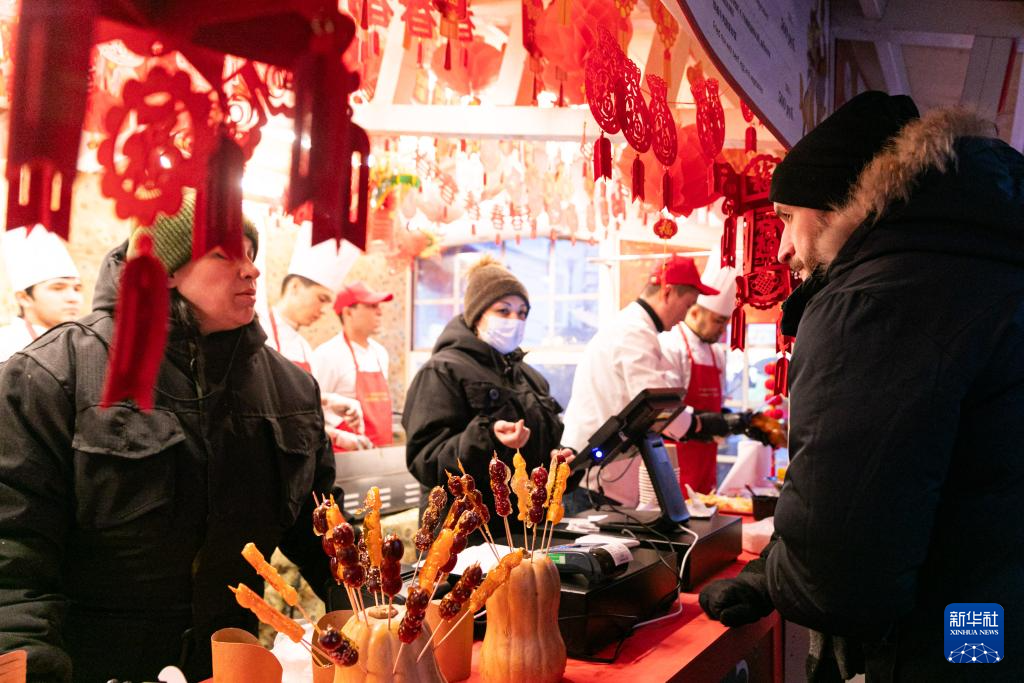 2月9日,在俄罗斯首都莫斯科,顾客购买中国小吃。