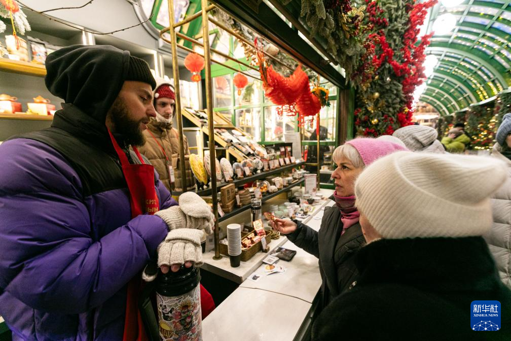 2月9日,在俄罗斯首都莫斯科,市民选购茶叶。