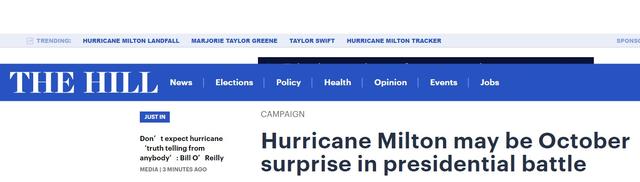 连续两场飓风,也被媒体视为与中东局势相提并论的“十月惊奇”(指在11月大选前出现的、可能扭转选举结果的事件)。谁也不知道,还有怎样的惊奇言论和惊奇事件等着我们。