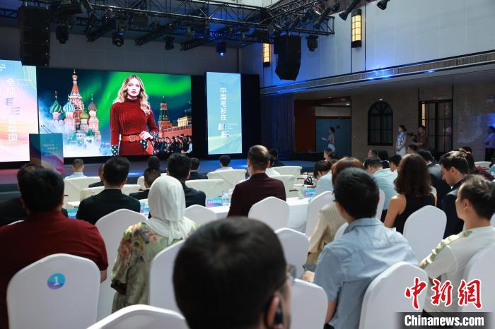 4月18日,浙江省洪合镇“一带一路”贸易资源对接暨毛衫高质量创新发展大会现场。孙杨洋 摄