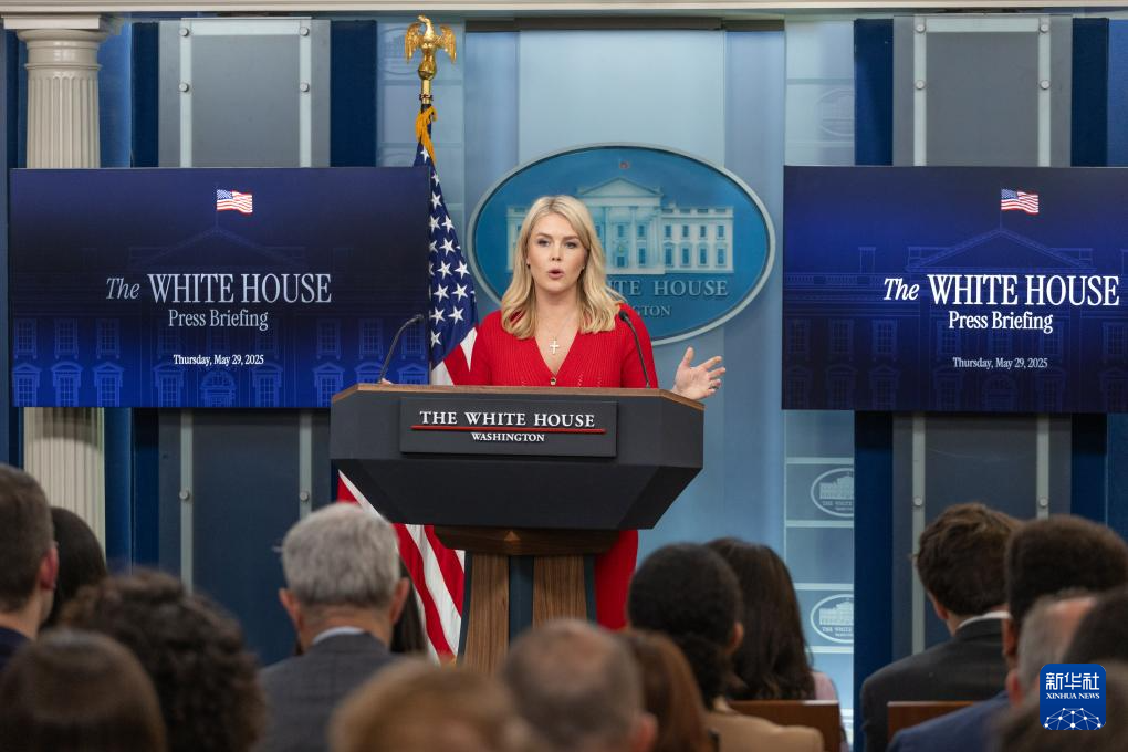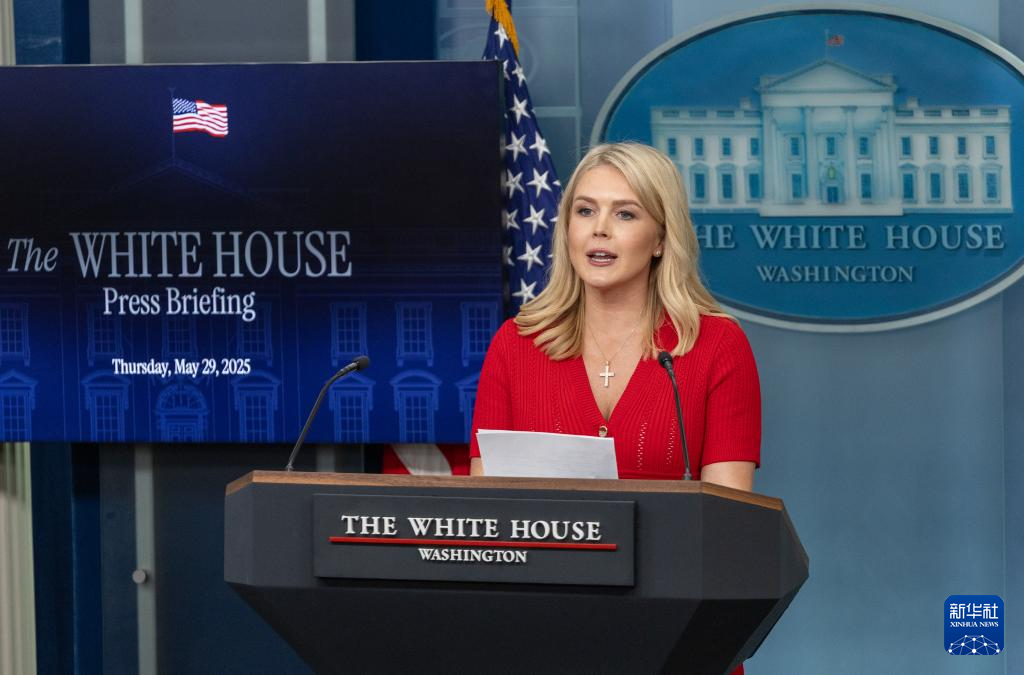 5月29日,在美国华盛顿白宫,白宫新闻秘书卡罗琳·莱维特出席记者会。新华社记者 胡友松 摄