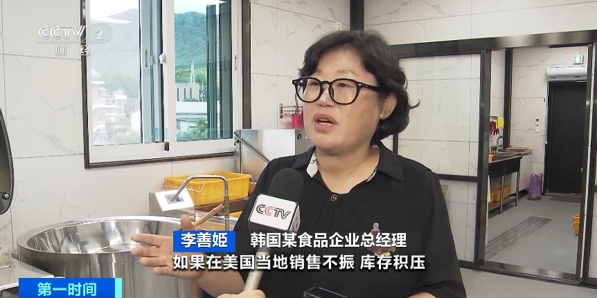 韩国某食品企业总经理 李善姫:受美国关税政策影响,产品价格竞争力下降。如果在美国当地销售不振,库存积压,美国客户采购就会趋于谨慎,而且公司人工成本等固定费用也在持续增加,原本顺利推进的业务仿佛被按下了暂停键。