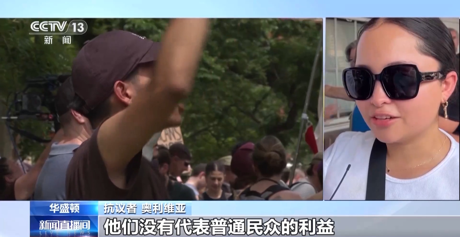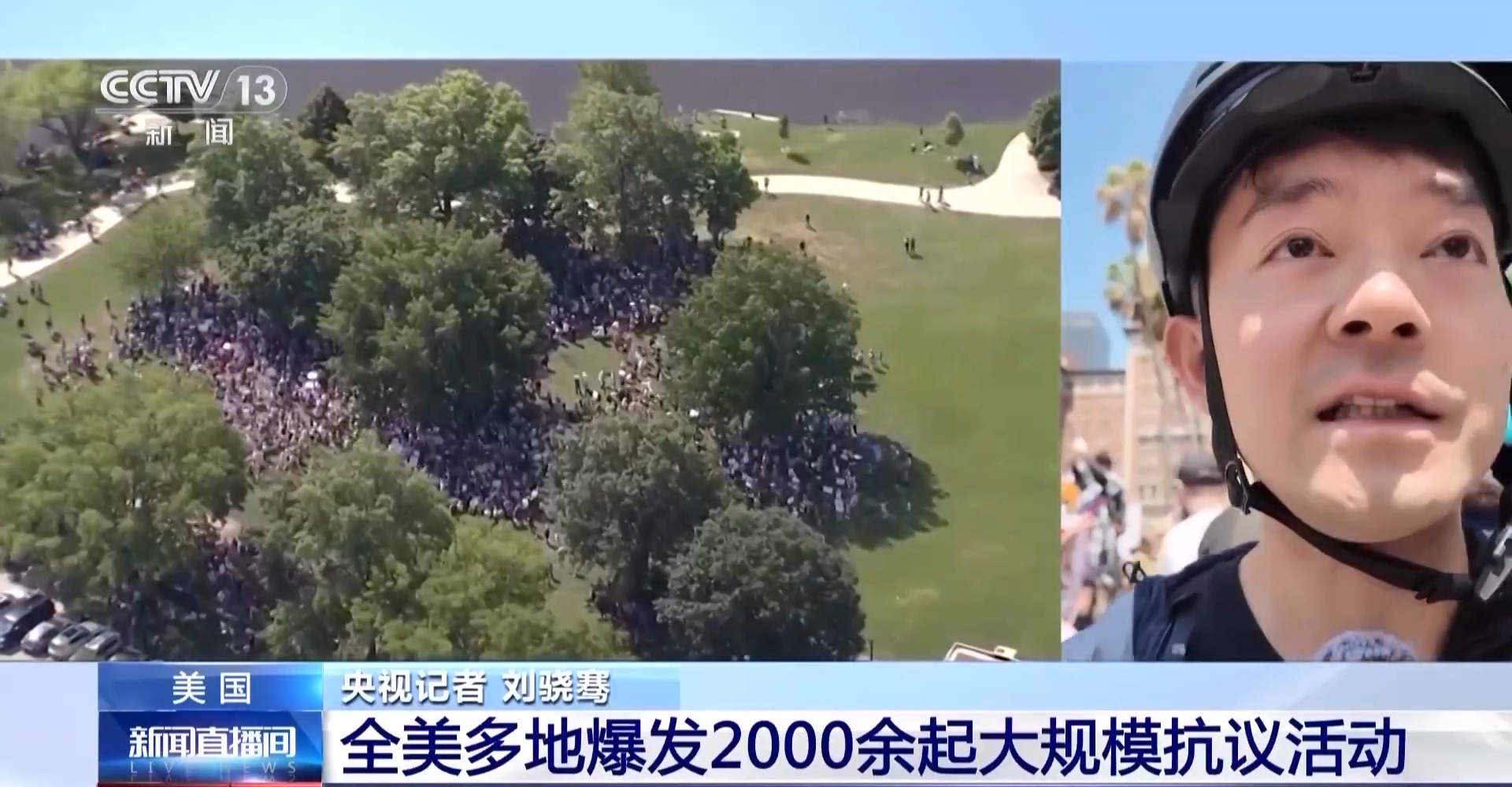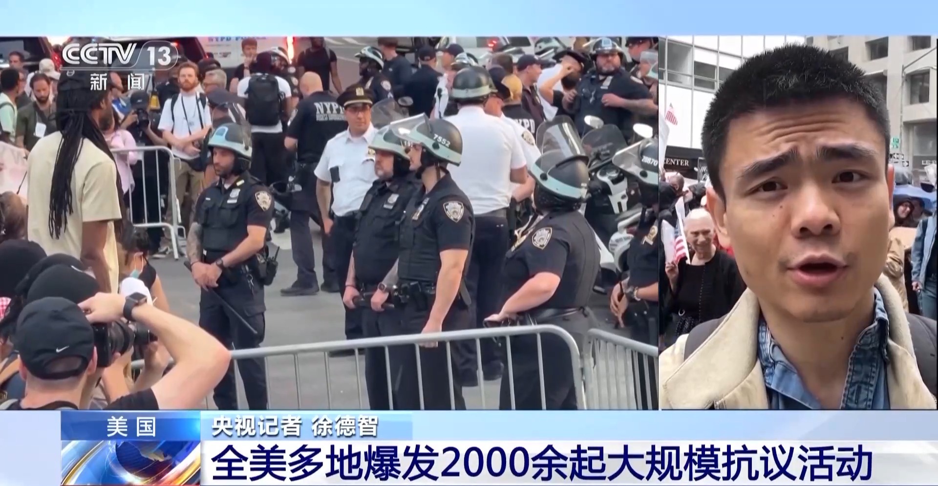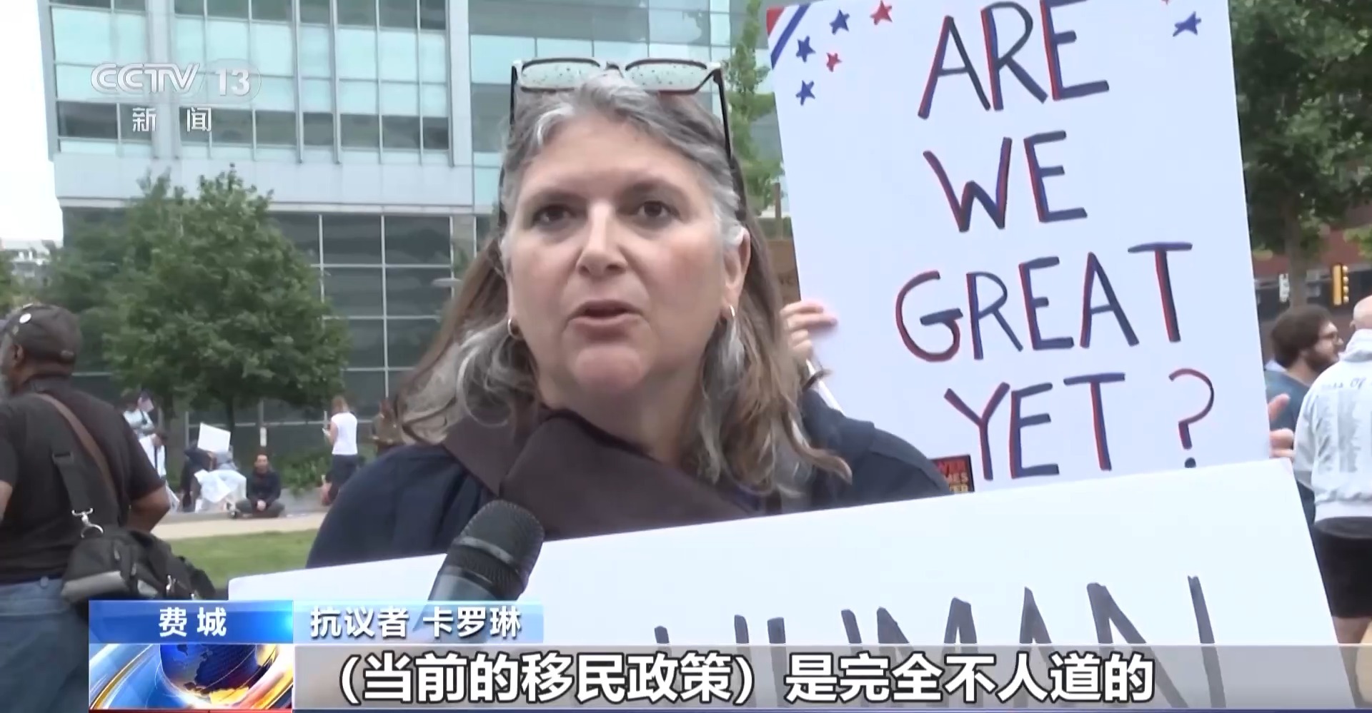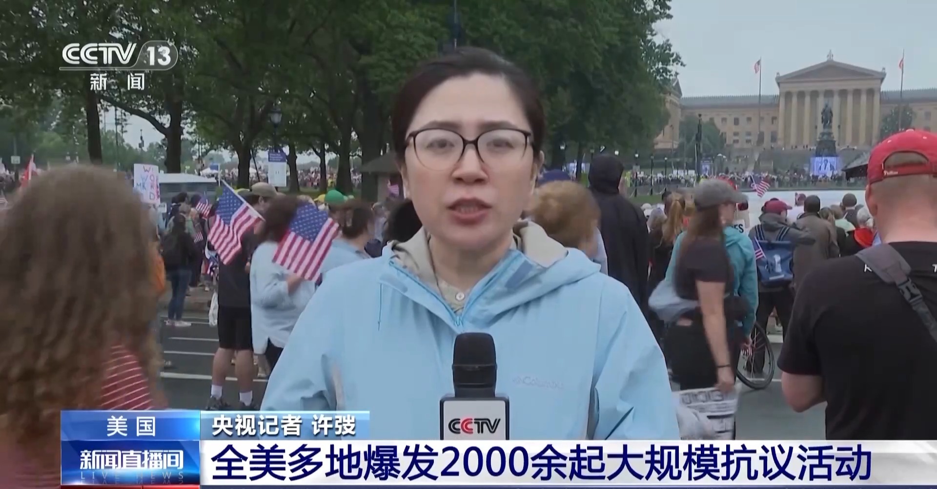 央视记者 刘旭:在我身后的城市中心的广场上,今天(14日)大概有超过千人在这里举行集会,很多人举着不同的标语。他们对于特朗普政府在过去四个多月来,无论是在经济、关税政策以及边境移民政策等方面都表达了强烈的不满和反对的情绪。