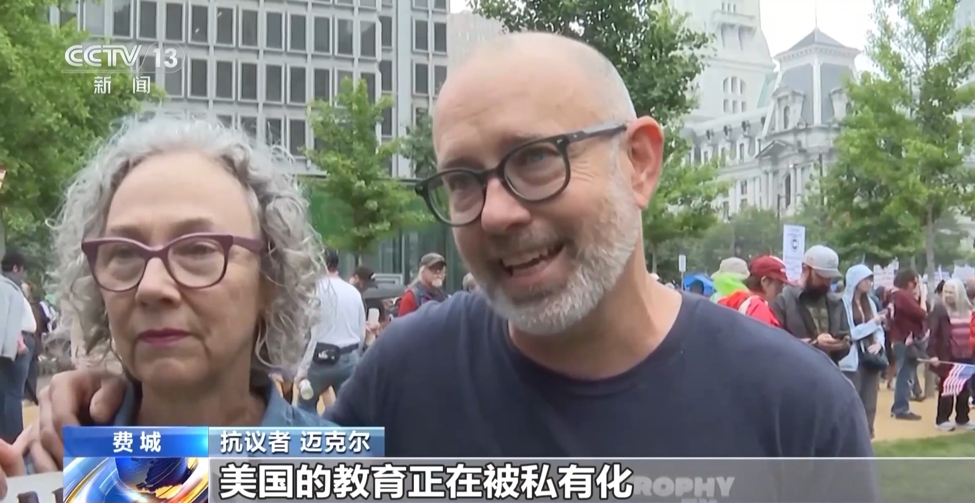 抗议者 迈克尔:美国的教育正在被私有化,正在变成一门生意。