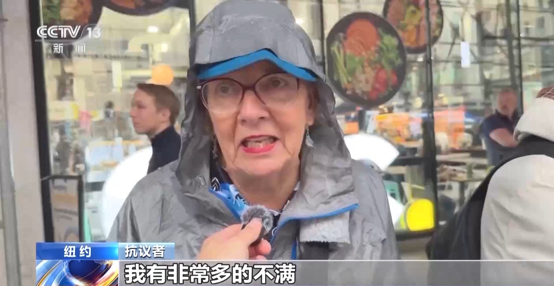 央视记者 徐德智:我们在过去一周以来看到了很多纽约市的抗议活动,但是今天这一场的规模是空前的。现场所持的标语牌显示,大家对联邦政府的政策很多都是不满的。