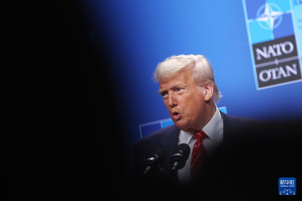 6月25日,在荷兰海牙,美国总统特朗普在北约峰会后出席记者会。新华社记者 赵丁喆 摄