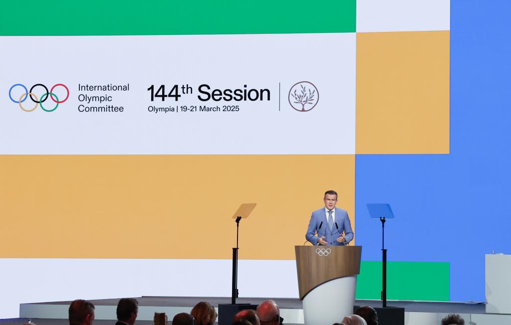 3月21日,世界反兴奋剂机构主席班卡在国际奥委会第144次全会上发言。新华社记者 曹灿 摄