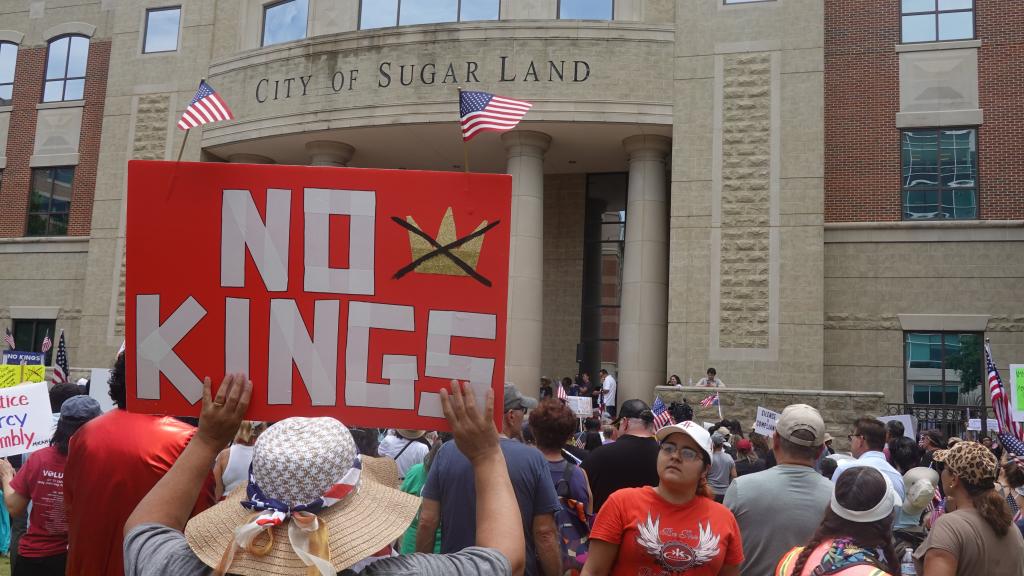 6月14日,在美国得克萨斯州休斯敦,人们参加 “不要国王”抗议活动。新华社记者徐剑梅摄