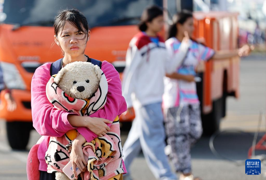 12月8日,在泰国武里南府,撤离边境省份的民众来到一处避难所。