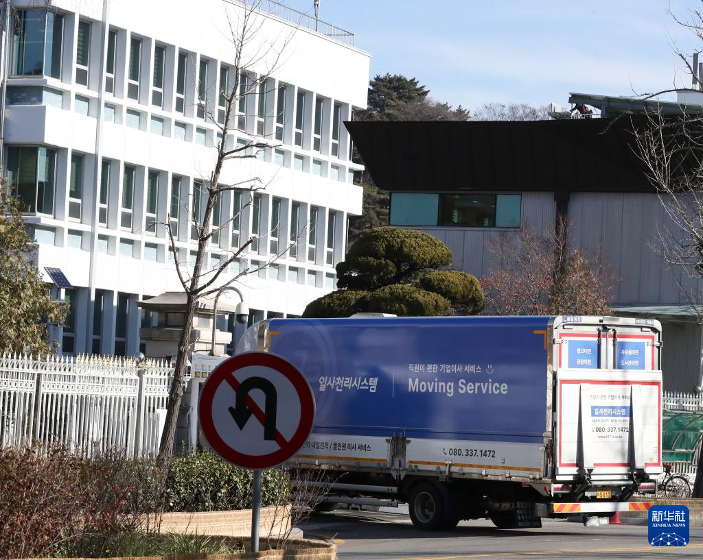 12月22日,在韩国首尔,一辆搬运车辆驶入青瓦台附近办公区域。新华社记者 姚琪琳 摄