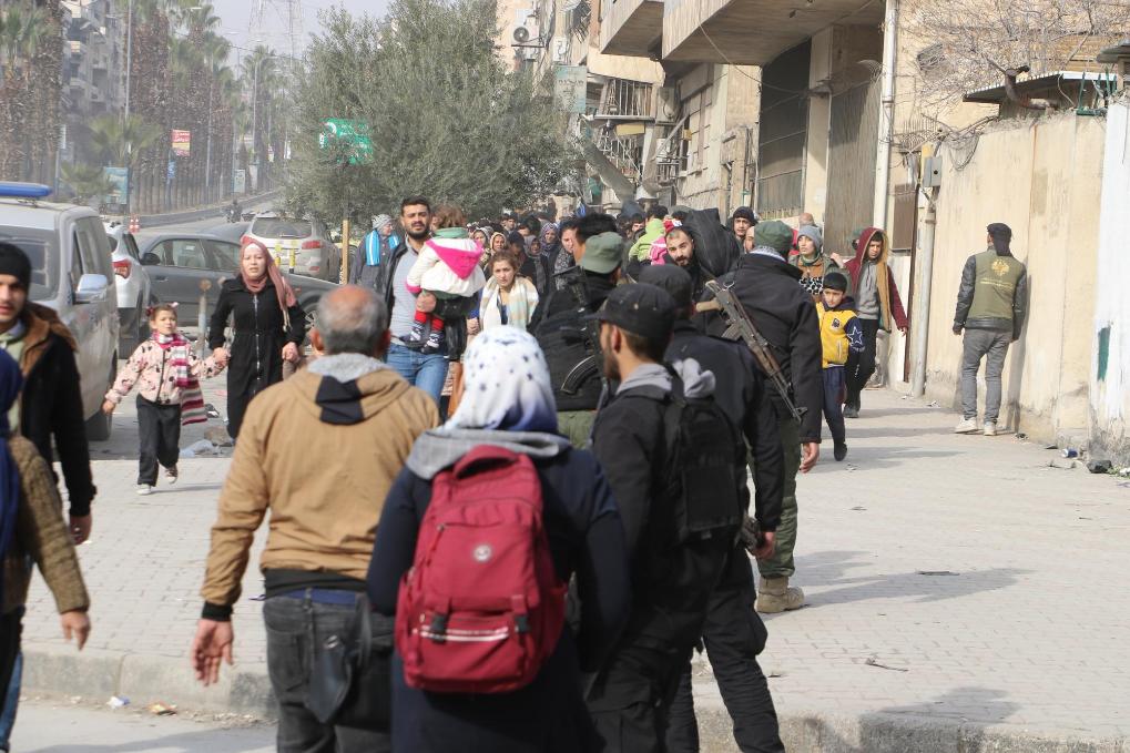 1月7日,在叙利亚北部阿勒颇市,人们从谢赫·马克苏德街区和阿什拉菲耶街区逃离(手机照片)。新华社发