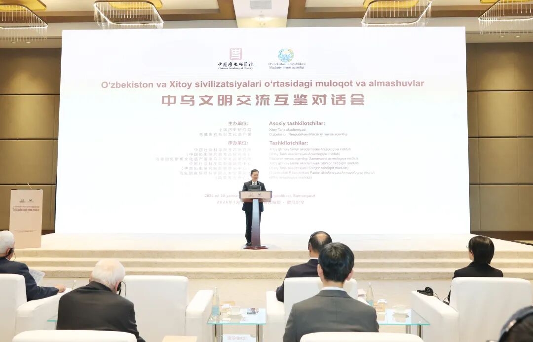 博博耶夫表示,撒马尔罕州与中国拥有悠久而深厚的历史渊源。自古丝绸之路时期以来,双方的经贸与文化交流便不断发展。当前,在共建“一带一路”倡议框架下,这种合作关系已迈入新的发展阶段,并为区域间协同发展作出了重要贡献。乌中两国领导人之间的高度互信、深厚友谊与密切互动,为我们注入了新的动力,激励我们更加充分地释放各自的发展潜力。撒马尔罕位于古丝绸之路的十字路口,拥有三千年的发展历史,不仅在文化和旅游领域潜力巨大,同时在经贸与工业发展方面也是乌兹别克斯坦具有战略意义的重要地区。乌中两国关系源远流长,早在公元前2世纪,随着汉代中国与中亚地区交往的展开,双方关系便逐步形成并发展。古丝绸之路不仅是一条贸易通道,更是中国与中亚之间文化与学术交流的重要桥梁。如今,这一历史遗产正在共建“一带一路”倡议框架下被赋予新的时代内涵。今天举办的对话会,正是保障并推动两国在科学、教育和文化领域长期合作的重要实践性交流平台。在考古领域,双方的合作始于2011年,当年撒马尔罕考古研究所与中国社会科学院考古研究所签署了合作协议。此项合作为后续多项国际联合项目和考古考察奠定了坚实基础。我衷心希望,今天的活动能够进一步巩固两国之间的友谊与合作。
