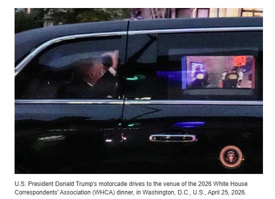 中新网4月26日电 据法新社、《今日美国》(USAToday)报道,当地时间4月25日,美国总统特朗普与第一夫人梅拉尼娅共同出席在华盛顿特区希尔顿酒店举行的2026年白宫记者协会晚宴。报道称,当晚宴会期间出现突发状况,现场突然传出数声巨响。