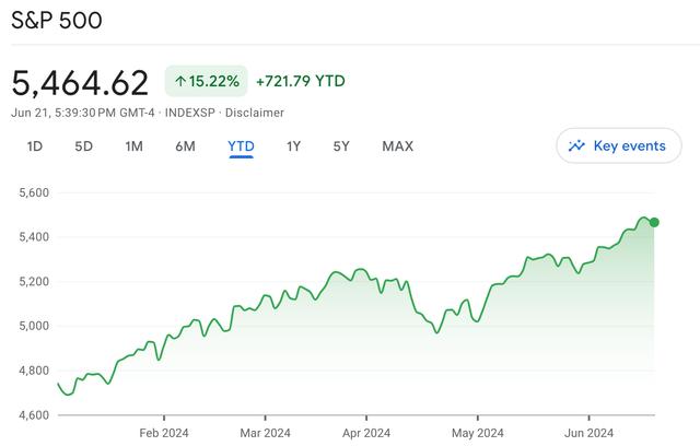 媒体调查的中值显示,标普500指数在2024年底收于5606点,较6月21日的收盘价仍有3%的上调空间。美股投资者的预期较华尔街策略师的预期中值相比仍较为乐观。