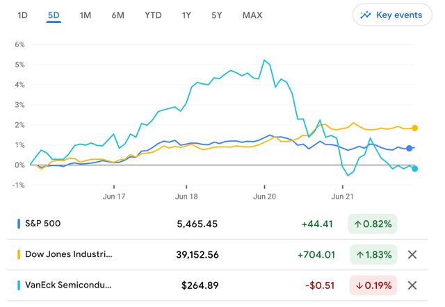 但从上周四开始,美股板块之间明显发生了轮动,因英伟达股价跳水造成整个科技股板块回调,而以周期性板块为代表的道指创近两个月最大周涨幅,上周涨幅达到1.45%。