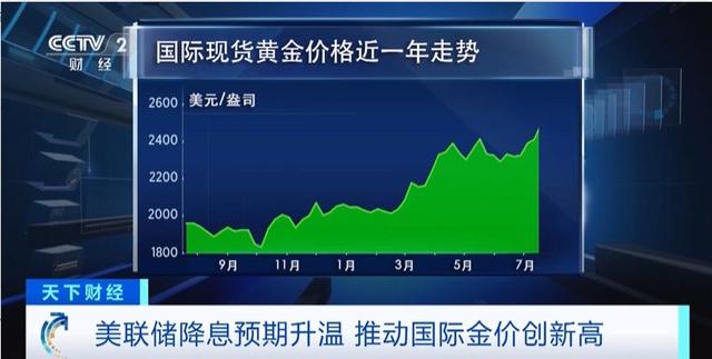 CNBC 蒋钰:随着市场对美联储在今年9月会降息的预期不断升温,利率下降通常会增加无息资产黄金的吸引力。隔夜国际金价上涨,创下历史新高。现货黄金,盘中上涨大约1.9%,达到2469美元/盎司,这突破了今年5月曾创下的高点,伦敦证券交易所的数据还显示,这是自1968年以来未经通胀调整的历史最高价。