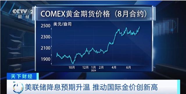 (央视财经《天下财经》)当地时间周二,国际金价上涨至历史新高。今天开盘继续上涨,伦敦现货黄金和纽商所黄金期货主力合约双双涨破2470美元/盎司,金价上涨背后的推动因素是什么?