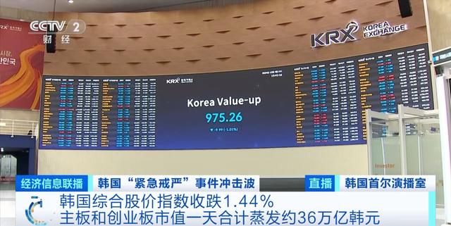 (央视财经《经济信息联播》)从昨天(3日)深夜到今天(4日)凌晨,韩国总统尹锡悦“闪电”发布和解除“紧急戒严”。尽管紧急戒严状态持续了六个多小时便被解除,但还是严重影响了今天的韩国金融市场。