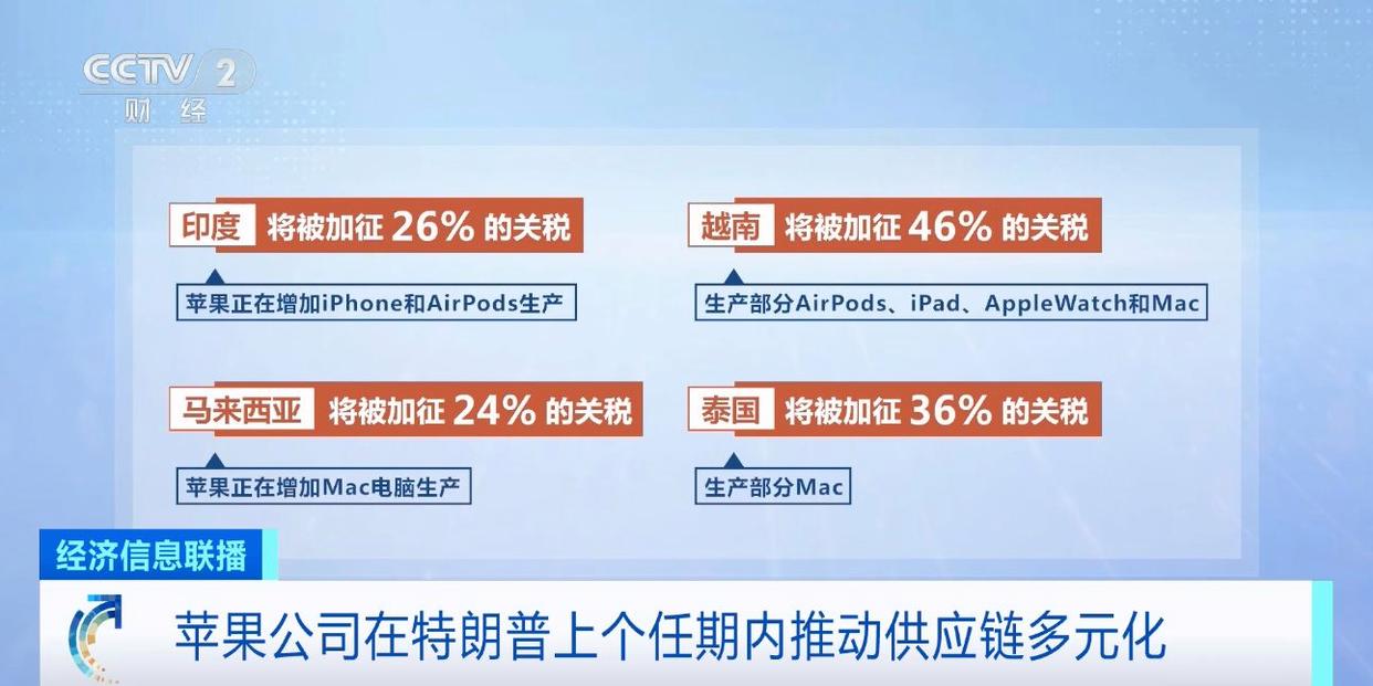 事实上,正是在特朗普第一个任期内,苹果公司开始推动供应链多元化,包括将部分手机和耳机生产转移至印度,将部分耳机、手表和电脑生产转移至越南,并在马来西亚和泰国增设电脑产品生产线。但特朗普政府计划对东南亚国家普遍征收高额“对等关税”,无疑将重创苹果公司的供应链。
