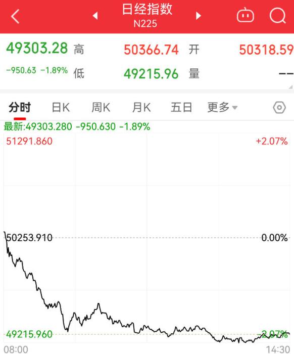 中新网12月1日电(记者 张乃月)当地时间12月1日,日本股市、债市再次遭遇“双杀”。日经225指数高开低走,盘中一度跌超千点,收盘时跌幅达1.89%。