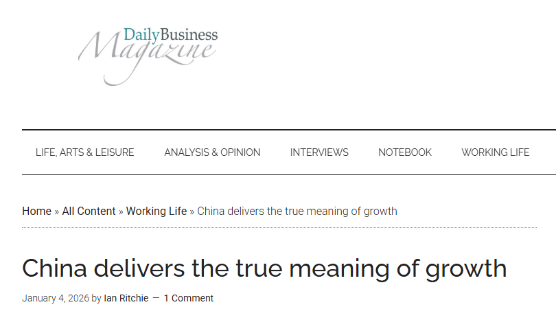 作者伊恩·里奇在文章中以大量实例,高度赞扬中国的发展速度。他对比说,20多年来,英国没能建成一条从伦敦通往伯明翰的高速铁路,与之形成鲜明对比的是,中国已建成总里程约5万公里的高速铁路网络,连接全国550多个城市,覆盖97%以上人口超过50万的城市。