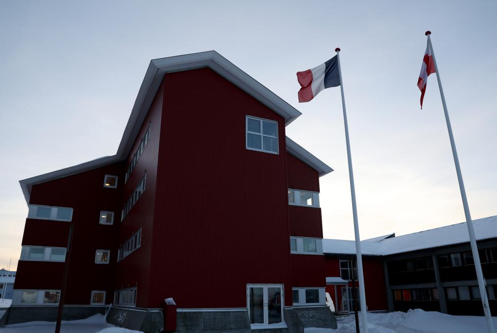 这是2月6日在丹麦自治领地格陵兰岛首府努克拍摄的法国国旗。加拿大与法国6日分别在丹麦自治领地格陵兰岛首府努克开设领事馆,标志着两国在加强与格陵兰岛关系及提升北极事务参与方面迈出实质性步伐。新华社记者李颖摄
