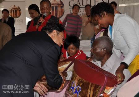 中国经济网约翰内斯堡12月15日电(记者马海亮)12月14日上午,中国驻约翰内斯堡总领馆、南非豪登省议会和约堡华人华侨联合举办的“2010年度华人华侨塔博-姆贝基村扶贫捐赠仪式”在位于约堡西北部的以前总统姆贝基命名的村庄草地上举行。中国驻约翰内斯堡总领事李江宁、豪登省议长琳迪韦-玛瑟科、当地议员马伊拉、南非华人华侨代表李新铸以及当地民众600多人出席了扶贫捐赠活动。
