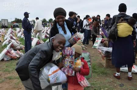 此次捐赠活动为300户贫困家庭送来了价值30多万兰特的生活必需品。每个受益家庭将获得12.5公斤玉米粉、2升食用油、2.5公斤食糖、一条毛毯以及鞋、玩具等生活物品。自2004年以来,南非华人华侨每年圣诞节前向南非贫困家庭捐赠生活用品,让贫困家庭能够过上一个幸福、快乐的圣诞节。今年是扶贫捐赠活动的第七个年头,累计捐赠了价值300多万兰特的生活物品。