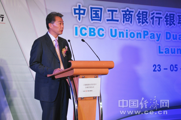 5月23日,中国工商银行在新加坡举行了工银银联双币信用卡首发仪式。中国驻新加坡大使魏苇、中国工商银行副行长李晓鹏、中国银联董事长苏宁、国际著名基金投资人罗杰斯、新中友协会长潘国驹教授、中资机构驻新加坡代表以及新加坡当地商户和华人、华侨代表等数百人出席了中国工商银行双币卡的首发仪式。