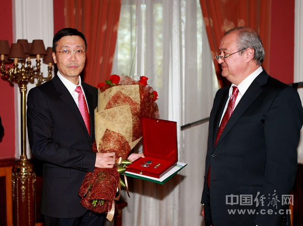 张霄大使获乌兹别克斯坦国家“友谊”勋章 中国经济网记者李垂发/摄