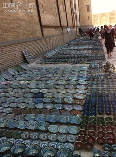 乌兹别克彩色盘子和茶具一条街。中国经济网李垂发/摄