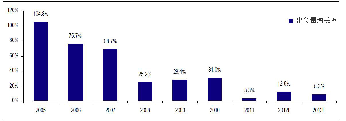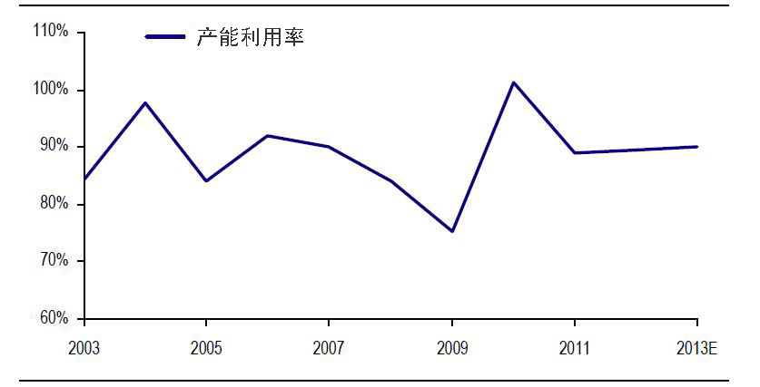 产能利用率回到过去两个周期内最高点的条件是,出货量在2013年增加13%。这个增长率并不是那么遥不可及,仅略高于2012年实现的增长率。