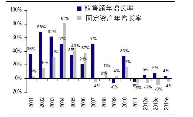 图4-5亚洲LCD企业的销售额和固定资产增长