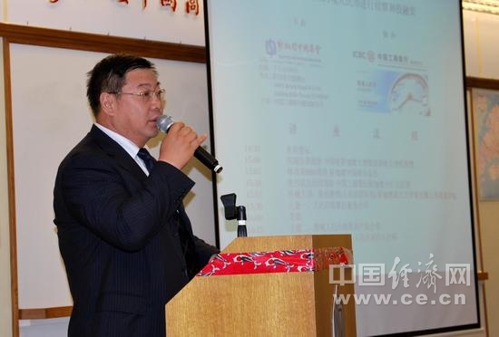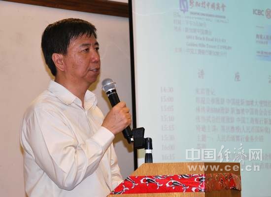 陈抗教授在座谈会上介绍人民币国际化问题  摄影  陶杰