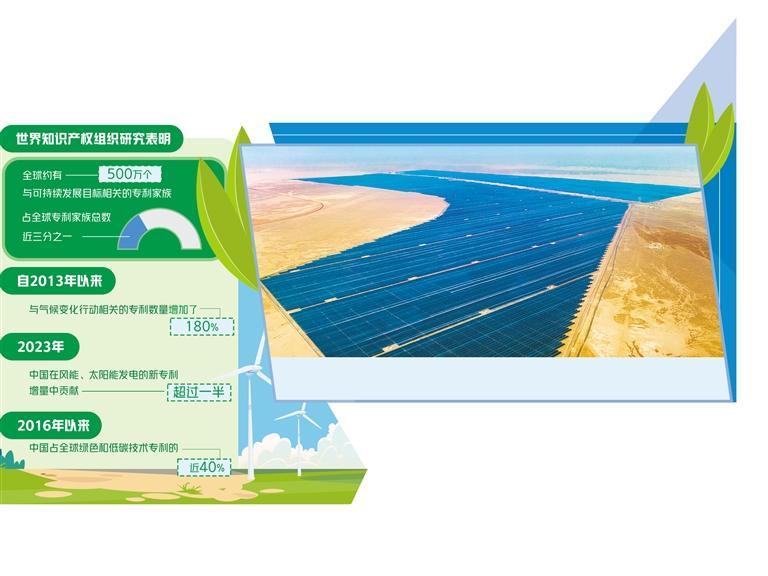 世界知识产权组织总干事邓鸿森表示,知识产权是绿色创新的强大催化剂,在引导人类社会走向更可持续发展道路上发挥着关键作用。世界知识产权组织的研究表明,全球约有500万个与可持续发展目标相关的专利家族,占全球专利家族总数的近三分之一。自2013年以来,与气候变化行动相关的专利数量增加了180%,这些专利正在推动人类社会绿色发展实现重大突破。