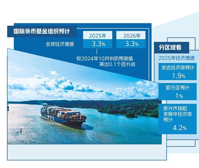 国际货币基金组织(IMF)日前发布《世界经济展望》更新内容,预计2025年全球经济增速将达到3.3%,较2024年10月份的预测值高出0.1个百分点,但仍低于2000年至2019年3.7%的历史平均水平。同时,IMF预测2026年全球经济增速也将保持在3.3%的水平。