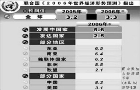 2006年以来,发展中国家和地区经济继续保持高速增长。上半年中国经济增长达到10.9%,第二季度增速更创下了10多年来的最高纪录。第一季度印度GDP增长率为9.3%,在全球21个最大经济体中仅次于中国。印度经济增速超出预期,以IT业为核心的服务业(占GDP一半)和以汽车产业为核心的制造业成为印度经济发展的两大增长动力,农业生产和消费支出也表现强劲。亚洲开发银行预计,2006财政年度印度经济将增长7.6%。预计2006年亚洲发展中国家经济整体增长将达到7.7%。2007年中印两国对世界经济增长的贡献率还将继续增大,中国和印度作为世界经济发动机的作用大大增强。