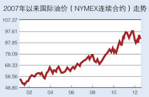 但是,两年之后,已经没有人对这一预测产生怀疑,因为一年之内,国际市场原油价格从年初的每桶50多美元一路飙升,一直到11月21日纽约商交所(NYMEX)创下“天价”,盘中达到99.23美元,离100美元大关仅差71美分。尽管许多国家不愿意看到油价上涨,但他们不得不承认这样一个事实:廉价石油时代已经一去不复返了,高油价正在成为常态。