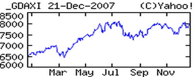 进入下半年,发端于美国的次级贷款危机给全球股票市场吹来了一股强劲寒流。次贷危机7月份开始从美国蔓延开来,并迅速波及到全球主要工业国家金融市场。受此影响,全球主要股票指数都出现了大幅度回调,个别指数的调整幅度超过了20%。影响最深的巴西圣保罗IBOVESPA指数在从7月18日到8月15日一个月内的跌幅达到15%。这次下跌侵吞了上半年的部分涨幅,使全年累计涨幅缩小。日经225指数上半年上涨了4.71%,但全年却下跌了10.21%,次贷危机影响之大由此可见一斑。