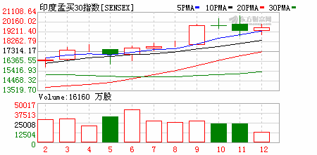 2010年,印度股市稳步上扬,孟买敏感指数11月4日突破20893.6点,创下两年新高。印度经济增势强劲,海外资金也在加快流入,两个因素共同推动了股市上涨。