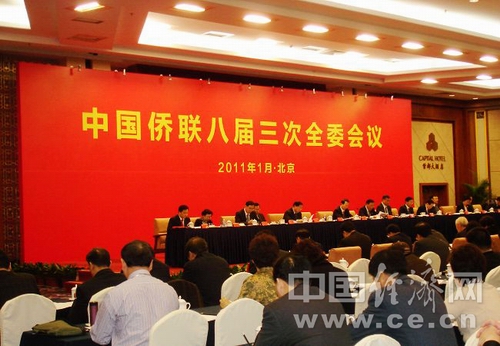 中国经济网北京1月19日讯(记者刘阳禾) 中国侨联八届三次全委会议今日在北京召开。据中国经济网记者了解,本届会议传达了中央书记处对侨联工作的重要指示精神;审议通过林军同志所作的工作报告、《关于动员广大归侨侨眷和海外侨胞为实现“十二五”目标任务贡献力量的决议》、《关于进一步加强侨联维护侨益工作的意见》;表彰了全国侨联系统信息工作先进单位。