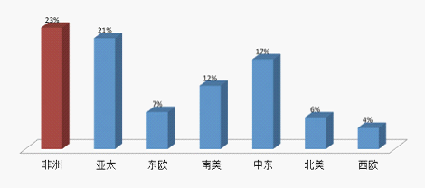 非洲将成为世界增速最高的手机市场。非洲市场目前的用户规模还不过是全世界的10%,人均普及率最低,增长率最有可能超过中国、印度等亚洲市场。因此可以说,非洲是手机市场潜力最高的地区。