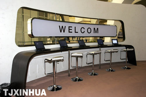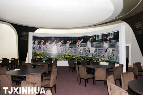 会展中心已装饰一新,迎接即将召开的2010夏季达沃斯。