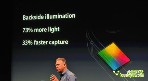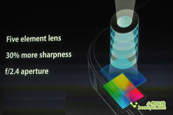 除了像素升级之外,iPhone 4S的摄像头还增加了红外滤光片(IR Filter)提升精度和均匀度,具有5组镜片,采用F2.4大光圈。