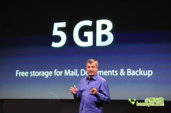 iCloud云服务器免费提供给用户5GB的存储空间,可存放E-mail、文档以及备份文件等