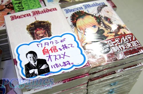 也正是由于拥有这样一个自幼深爱日本漫画的外相,当最新一卷的《蔷薇少女》发售之时,向来以出奇制胜的宣传POP闻名的秋叶原书店顺理成章了以外相的写真广告吸引读者。《蔷薇少女》最新的第7卷限定版附送真红FIGURE一个,这个真红乃MADE IN CHINA是也,因此广告语也被蒙上了一层友好的关系,民众们希望在日后的中日问题上,麻生能够采取积极的态度,把他对《蔷薇少女》的爱分给更多的人:“即使看在今后的中日关系问题上,也要购买这个限量版哦!”(宣传广告如是说)……