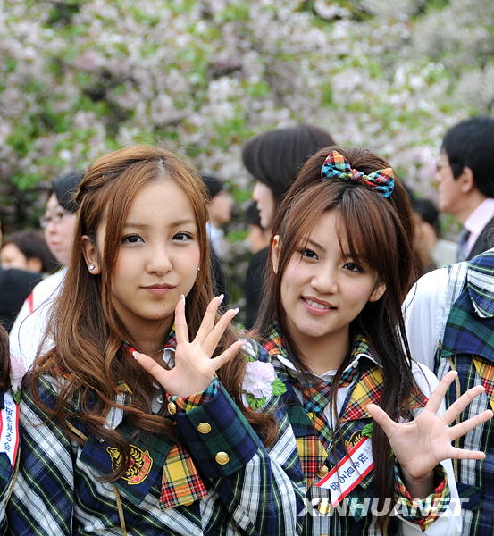 据日本新闻网4月19日报道,日本首相麻生太郎因为支持率上升最近一直“喜气洋洋”。他昨天在东京新宿御苑内主持了“赏樱会”。由于麻生喜欢漫画,还极力宣传日本美女,因此在赏樱会上他受到了年轻人的欢迎。图为日本首相麻生太郎在赏樱会上和靓丽的日本人气偶像组合“AKB48”等人合影留念。