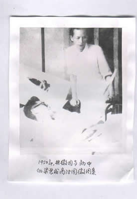 1950年,林徽因与病中的梁思成商讨国徽图案