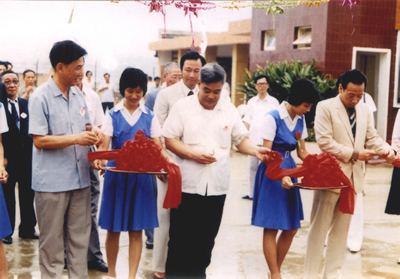1982年,福建省副省长黄长溪为印华地砖厂开工剪彩